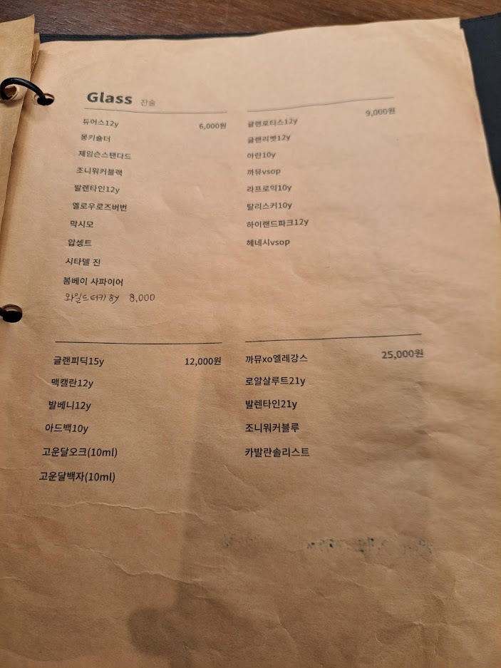 하이볼을 마시며 맛있는 요리들을 먹으니 피로가 풀리는 기분이 들었습니다. 위스키가 진열된 장식장을 보다가 무라카미 하루키의 위스키 에세이에 나왔던 보모어를 발견했습니다. 보모어는 스코틀랜드 서쪽에 있는 아일레이 섬에서 옛날 방식으로 만든 위스키입니다. 반가운 마음에 메뉴판을 찾아보았지만 메뉴판에는 보모어가 없었습니다. 대신 라프로익이 있었습니다. 라프로익도 아일레이 섬에서 만든 위스키입니다. 라프로익은 현대적인 방식으로 만든 위스키입니다. 저는 옛날 방식으로 만들었다는 보모어가 마음에 끌렸습니다.