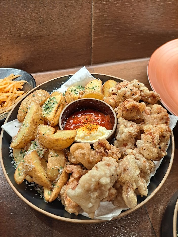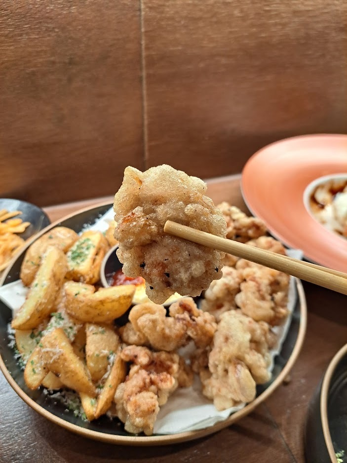 그리고 감자튀김&가라아게가 나왔습니다. 쫀뜩하고 탱글탱글한 가라아게 맛이 일품입니다.