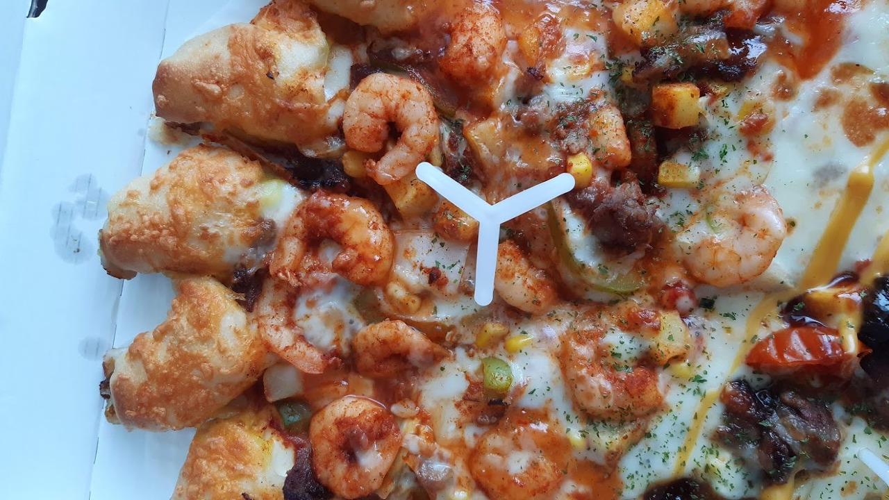 피자를 받아서 나왔습니다. 피자 냄새가 기분 좋게 올라옵니다. 이병헌 배우가 모델인가 봅니다. 제가 주문한 피자는 립스테이크&쉬림프 입니다. 집에 가서 피자 사진과 얼마나 비슷할지 확인해 볼 생각에 기대가 됩니다.